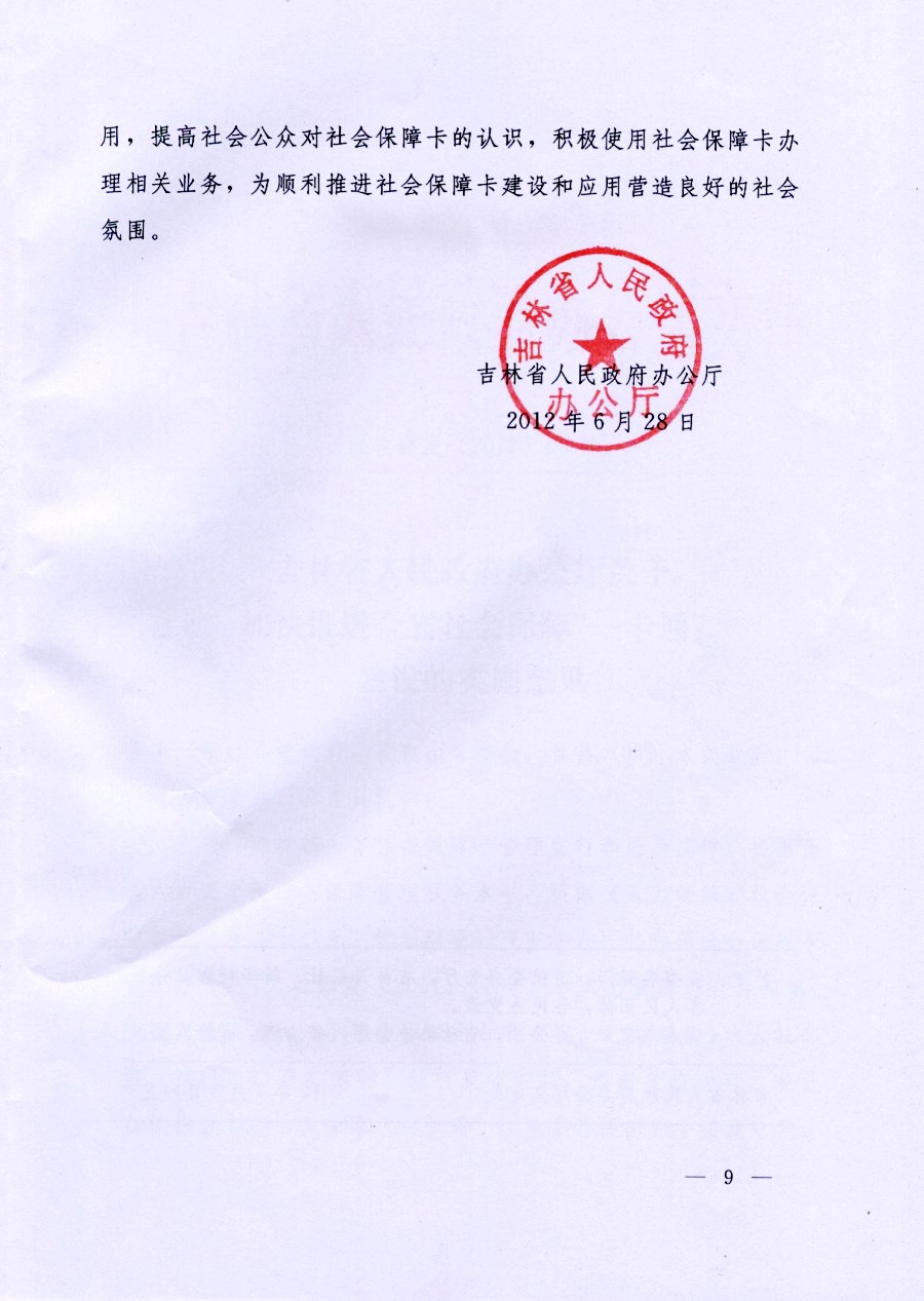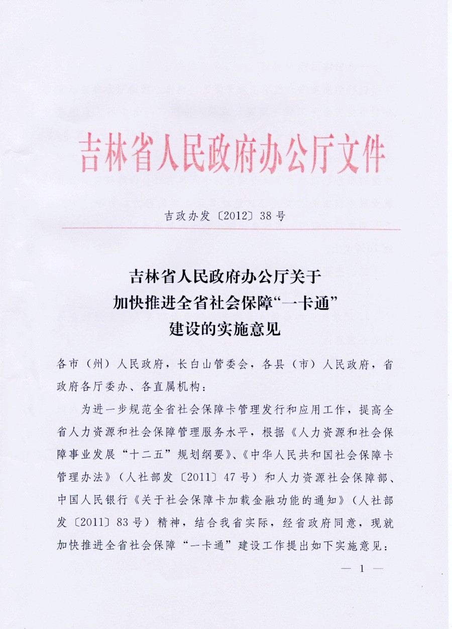吉林省人民政府办公厅关于加快推进全省社会保障“一卡通”建设的实施意见