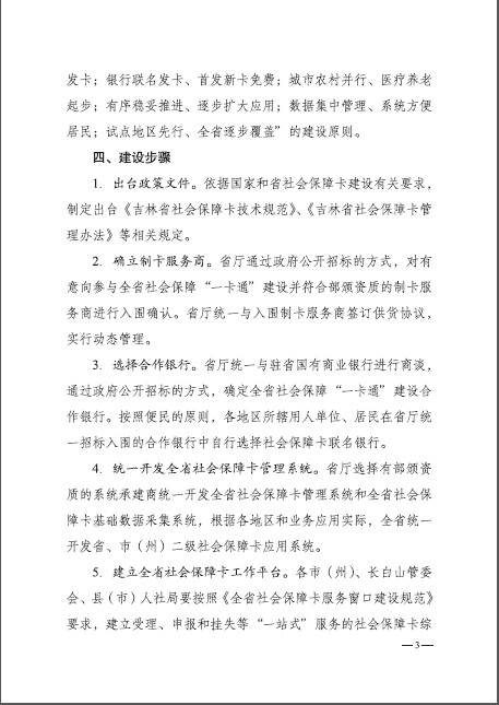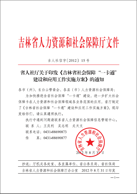省人社厅关于印发《吉林省社会保障“一卡通”建设和应用工作实施方案》的通知