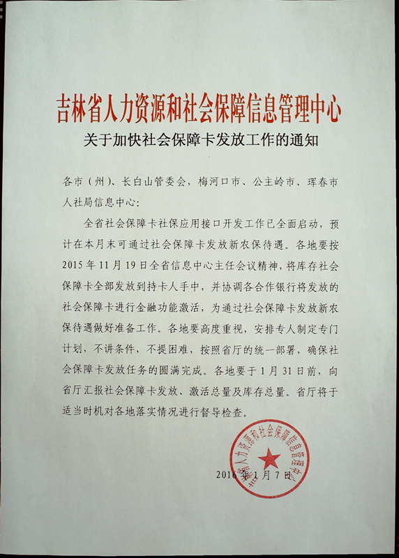 关于加快社会保障卡发放工作的通知